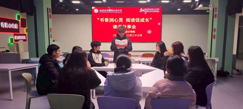 为深入推动心理健康教育进学生社区,以美润心推进立德树人机制综合改革试点院系建设,营造“爱读书、读好书、善读书”的浓厚氛围。12月23日中午,艺术设计学院依托“创美社区”一站式学生社区平台举办“书香润心灵 阅读促成长”读书分享会。学院党总支副书记王冬冬出席读书分享会,分团委书记丁鹏主持本次活动。