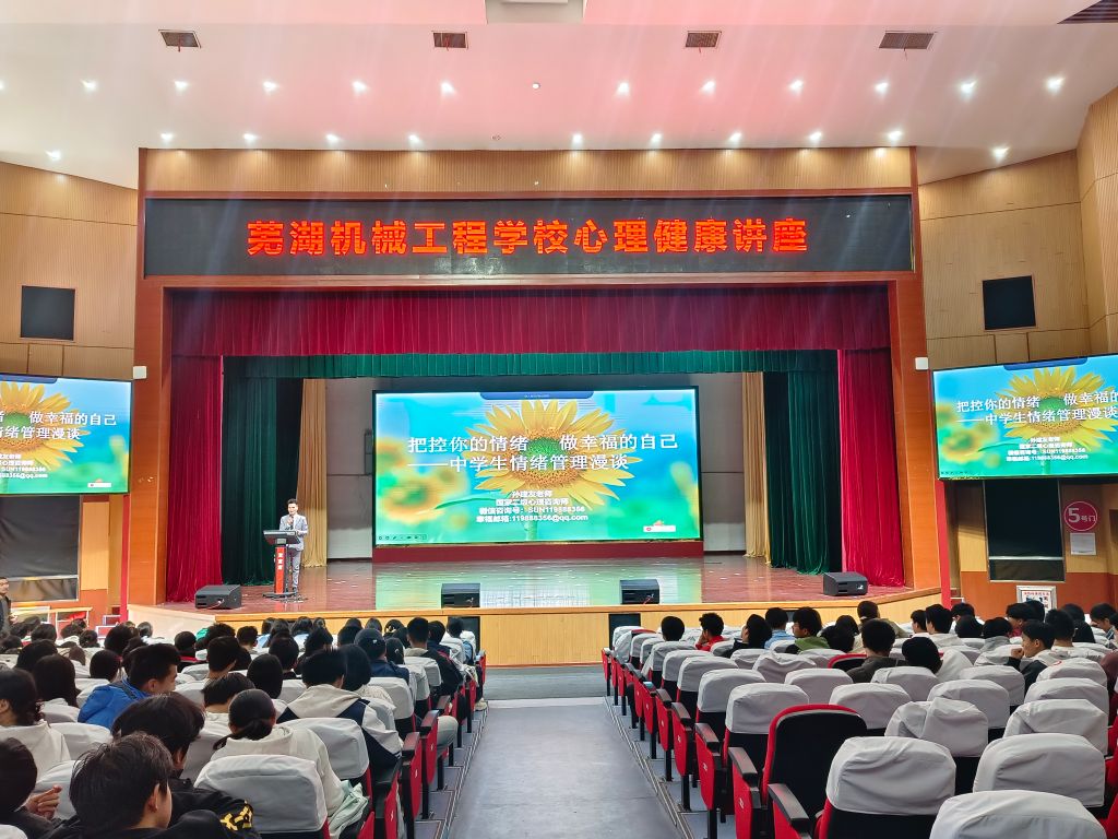 10月24日,艺术设计学院孙建友老师受邀走进芜湖机械工程学校,以 “把控你的情绪 做幸福的自己 —— 中学生情绪管理漫谈” 为主题,为该校近1000名师生带来一场实用的公益讲座,报告厅内座无虚席,互动氛围浓厚。