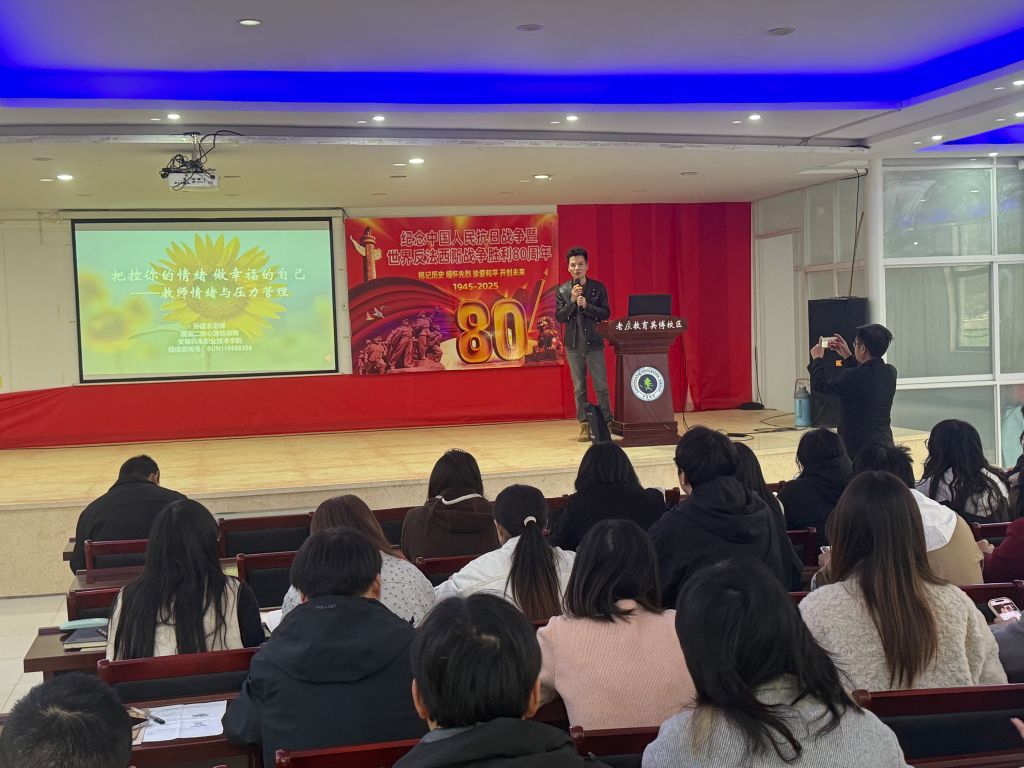 在教师情绪压力管理讲座中,孙建友从教师情绪管理的重要性、压力来源识别、情绪调节技巧三方面展开。他先以互动拉近距离,再结合教育行业案例,剖析教师在师生沟通、亲子沟通、夫妻沟通、家校协作中的心理挑战,还提供了深呼吸放松、时间管理、积极心理暗示等实用方法,教师们纷纷表示收获颇丰。