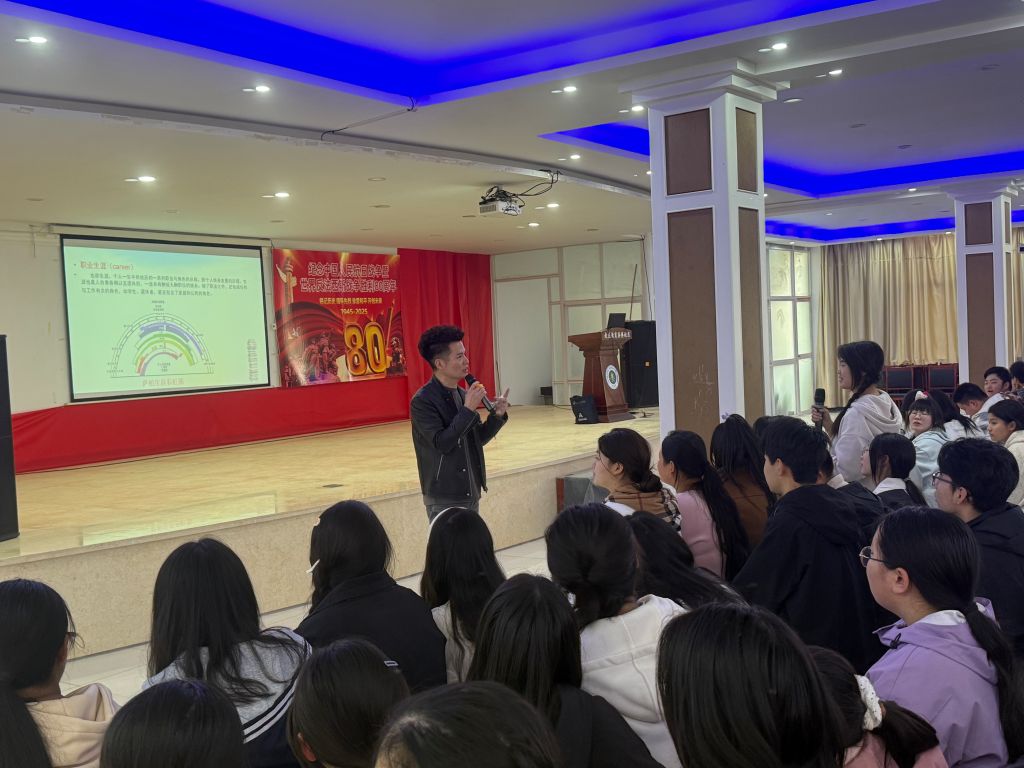 作为国家二级心理咨询师,孙建友在学生职业规划讲座中,结合自身经验与行业动态,以案例引导学生认识自我与职业的关联。孙建友通过职业兴趣、职业能力和职业性格测试以及互动提问,帮助学生破除“职业规划尚远” 的认知误区,讲解职业探索方法,助力学生树立清晰职业目标。