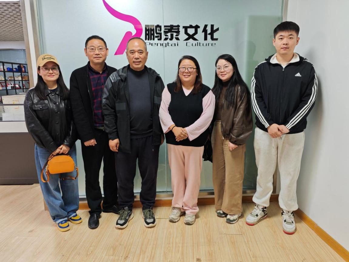 随后,学院一行到访安徽鹏泰文化科技有限公司,企业总经理罗蕾详细介绍了公司在品牌策划、新媒体运营、非遗文创产品等领域的业务布局与发展规划。座谈会上,邬孝春介绍了艺术设计学院的专业特色、人才培养成果以及2026届毕业生的基本情况。他表示,学院高度重视与优质企业的合作,希望以此次走访为契机,不仅建立常态化互动渠道,更积极探索校企党建联建的新模式,在共建实习就业基地、联合开展项目研发、共同开展主题党建活动等方面深化合作,实现校企双方互利共赢。
