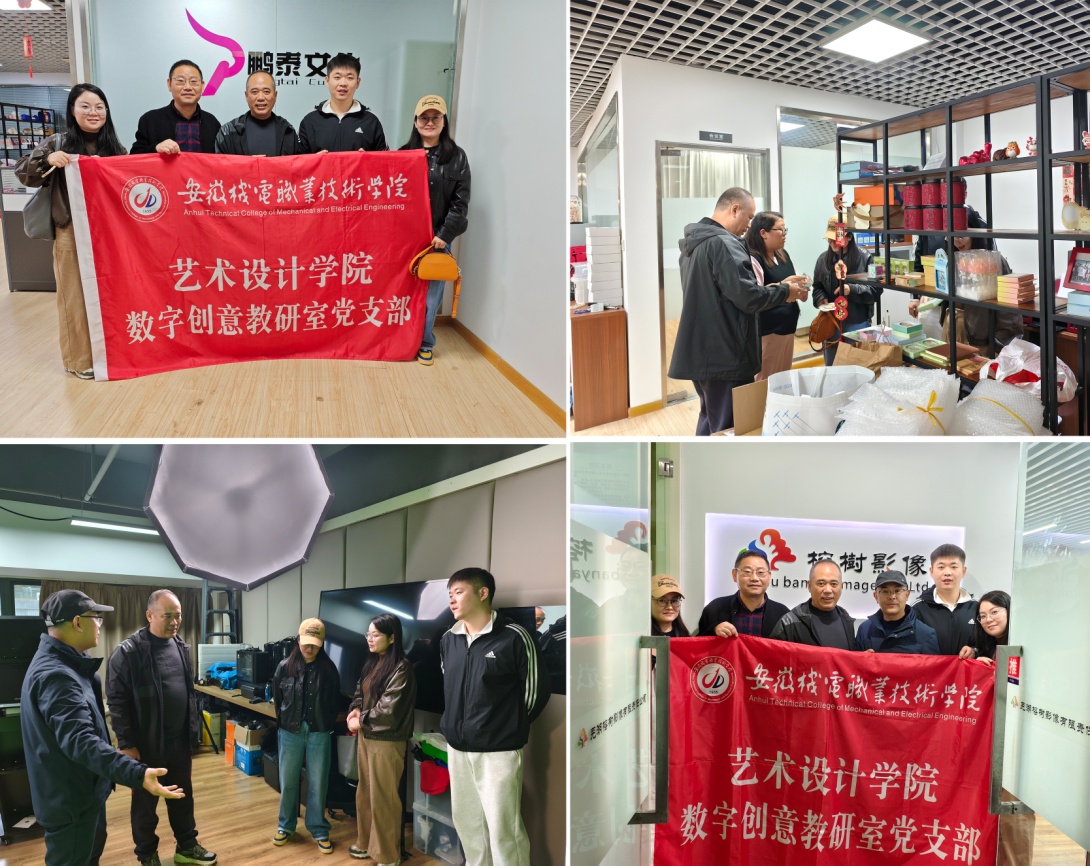 11月7日上午,艺术设计学院党总支书记邬孝春率数字创意教研室主任蔡晓骝及专业教师沈洁、张灿、张珠丽先后前往芜湖榕树影像有限责任公司、安徽鹏泰文化科技有限公司开展“访企拓岗”专项活动。