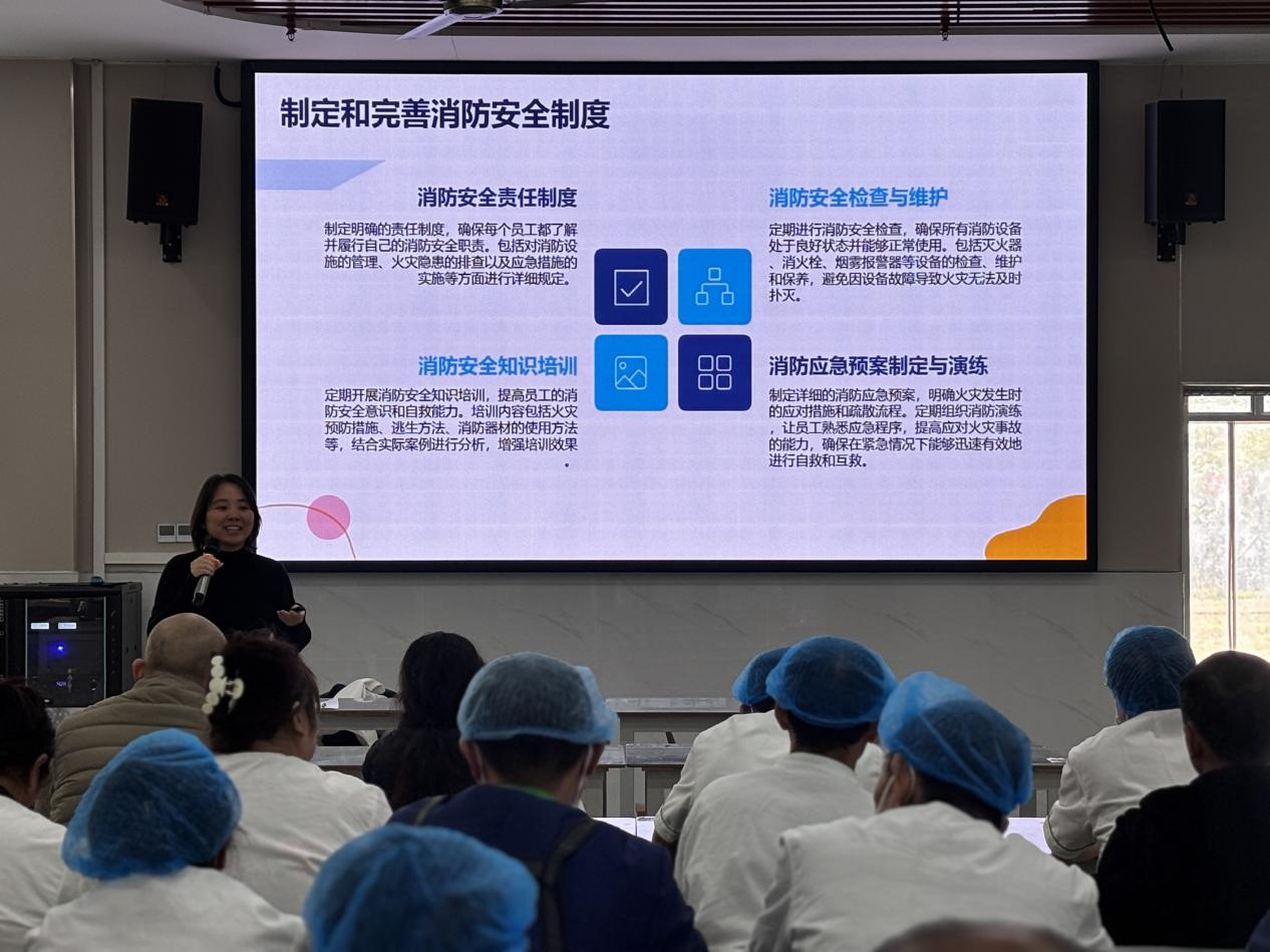 美育教研室支部刘明、于晓庆、罗佩瑶等教师参与本次培训的组织与实施。培训围绕“保障食品安全,共建无火厨房”主题,系统讲解了消防安全法律法规、厨房火灾预防措施、消防设施使用与维护、消防安全管理制度、员工消防培训及火灾应急预案等内容。