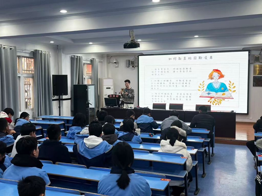 为提升师生校园霸凌识别、应对与干预能力,强化学生法治观念与同理心,构建安全和谐的育人环境,2025年12月5日,南京师范大学附属繁昌实验学校特邀艺术设计学院国家二级心理咨询师孙建友老师,为全体学生及班主任、德育教师开展预防校园霸凌专题培训活动。