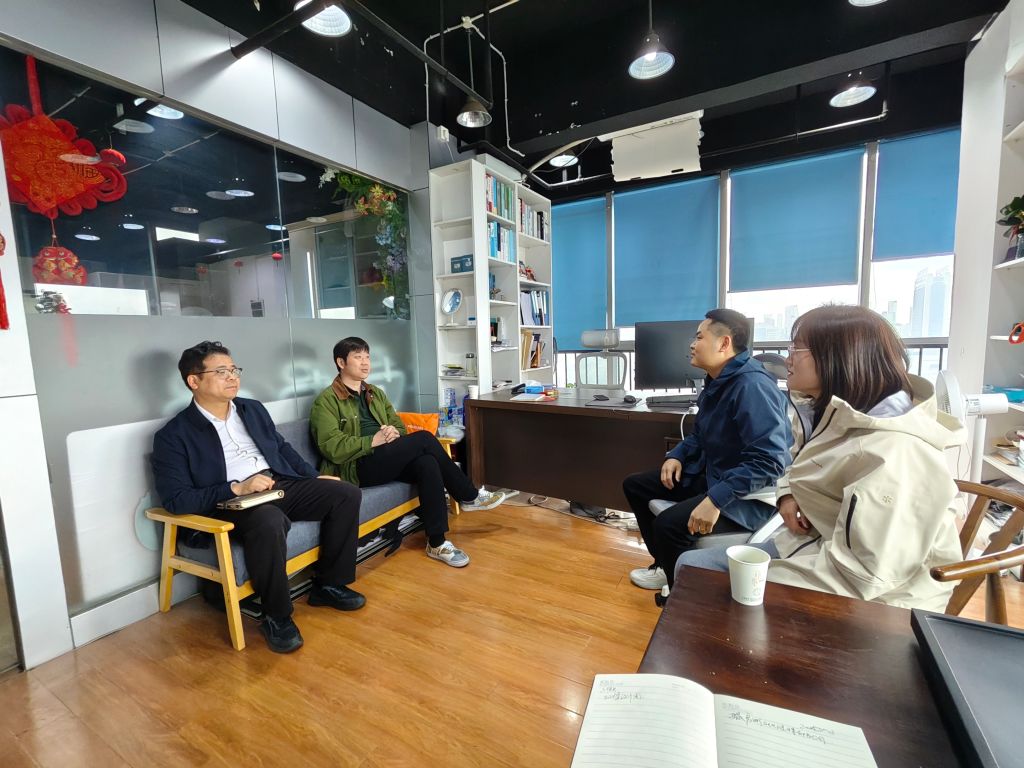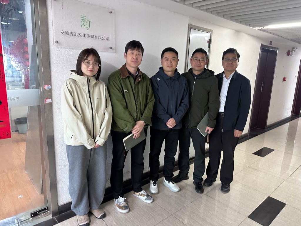 4月23日,艺术设计学院副院长陈代率队,与数字创意教研室主任蔡晓骝、骨干教师王栋臣及教学秘书倪漫一行,赴安徽麦町文化传媒有限公司开展“访企拓岗”专项调研。企业董事长肖强(我校校友)热情接待,双方围绕产教融合、人才共育等议题展开深度对话。